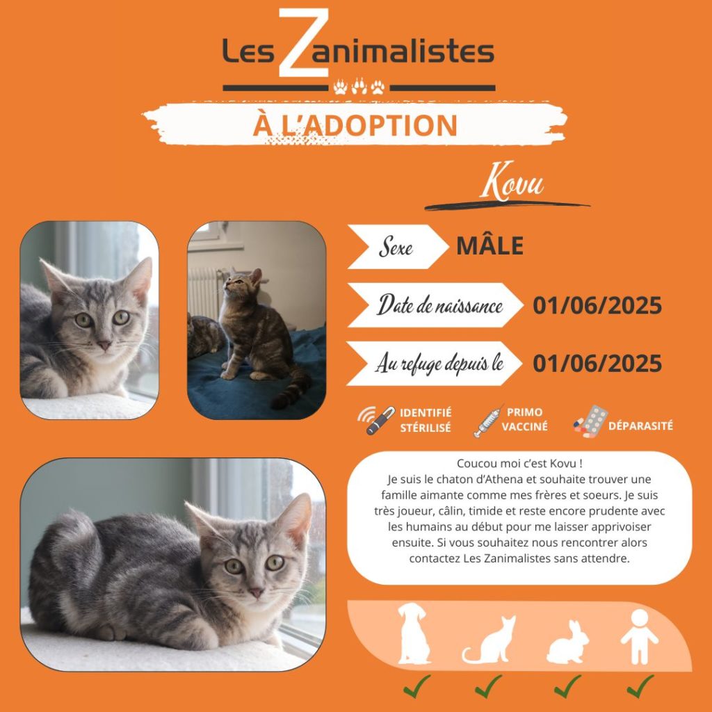 Pour adopter un chat ou un chaton, il vous suffit de prendre contact avec l’association Les Zanimalistes. Nous nous chargeons ensuite d’étudier votre envie d’animal de compagnie pour vous proposer de rencontrer nos petits protégers ! Vous pouvez aussi directement nous parler d’un de nos accueillis sur lequel vous avez craqué.